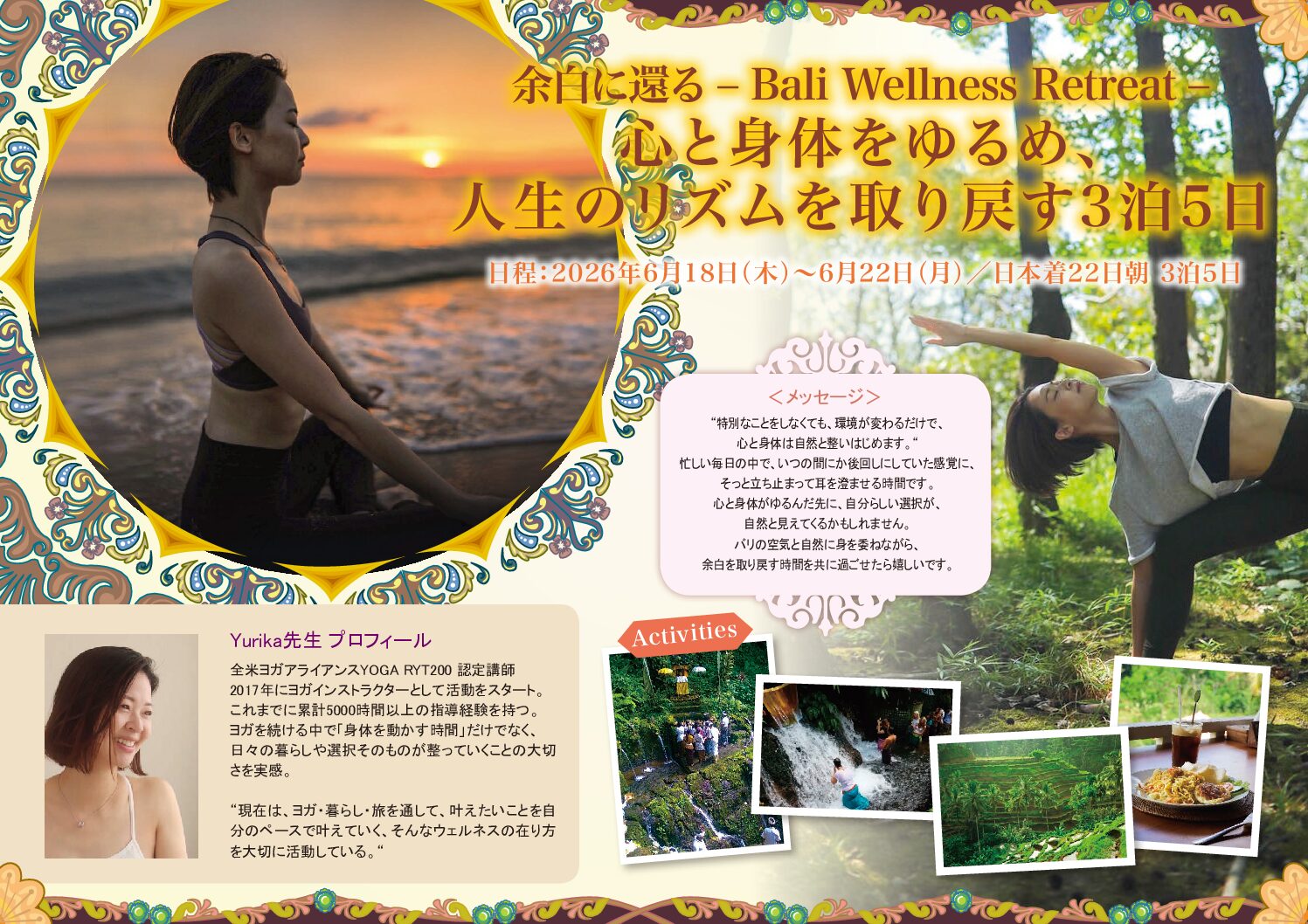 Yurika_Yoga Retreat Bali2026余白に還る- Bali Wellness Retreat -人生のリズムを取り戻す3泊5日